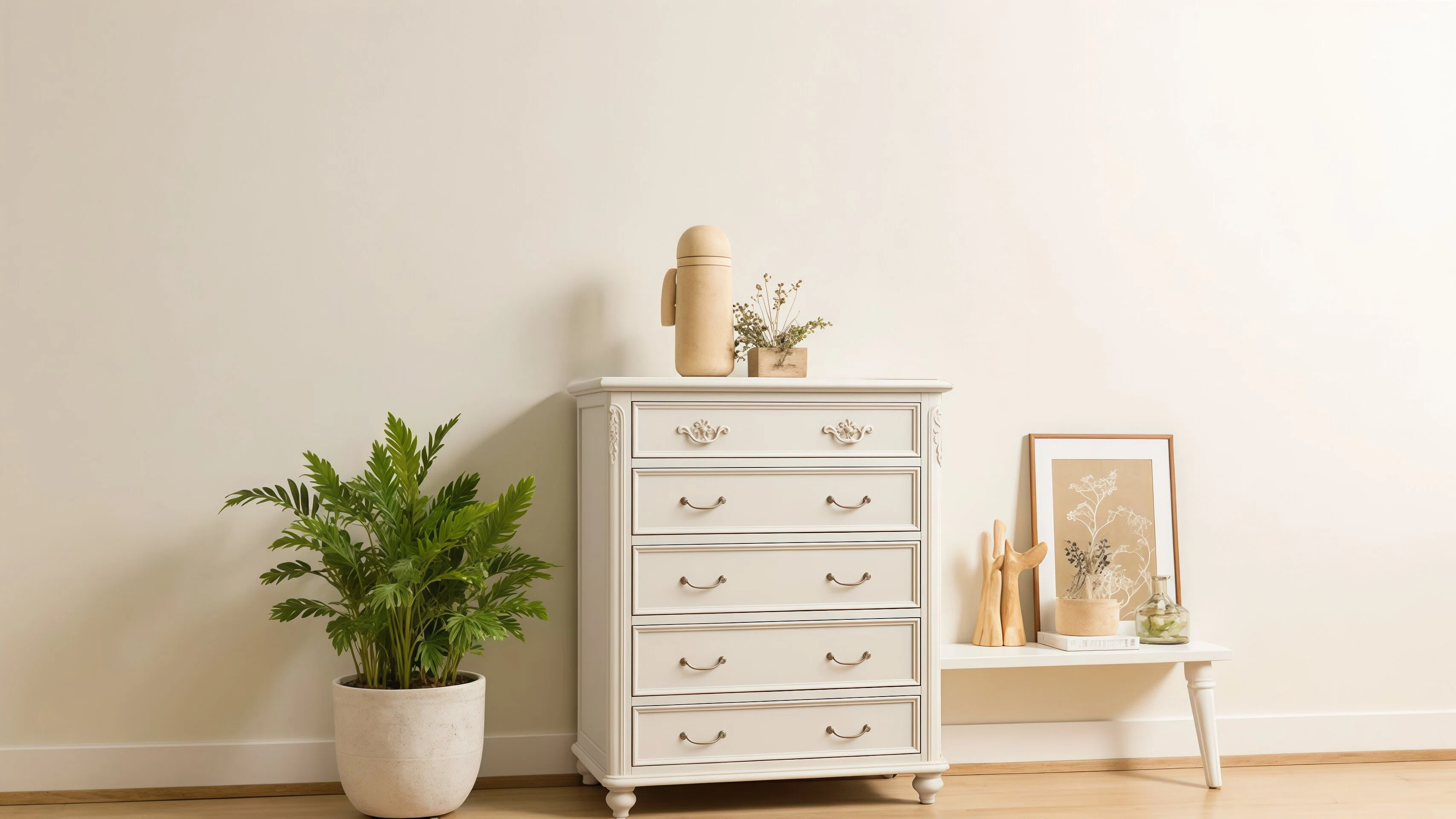 Ivory MDF Tallboy Chest of Drawers 5-Drawer 130cm x 90cm x 45cm