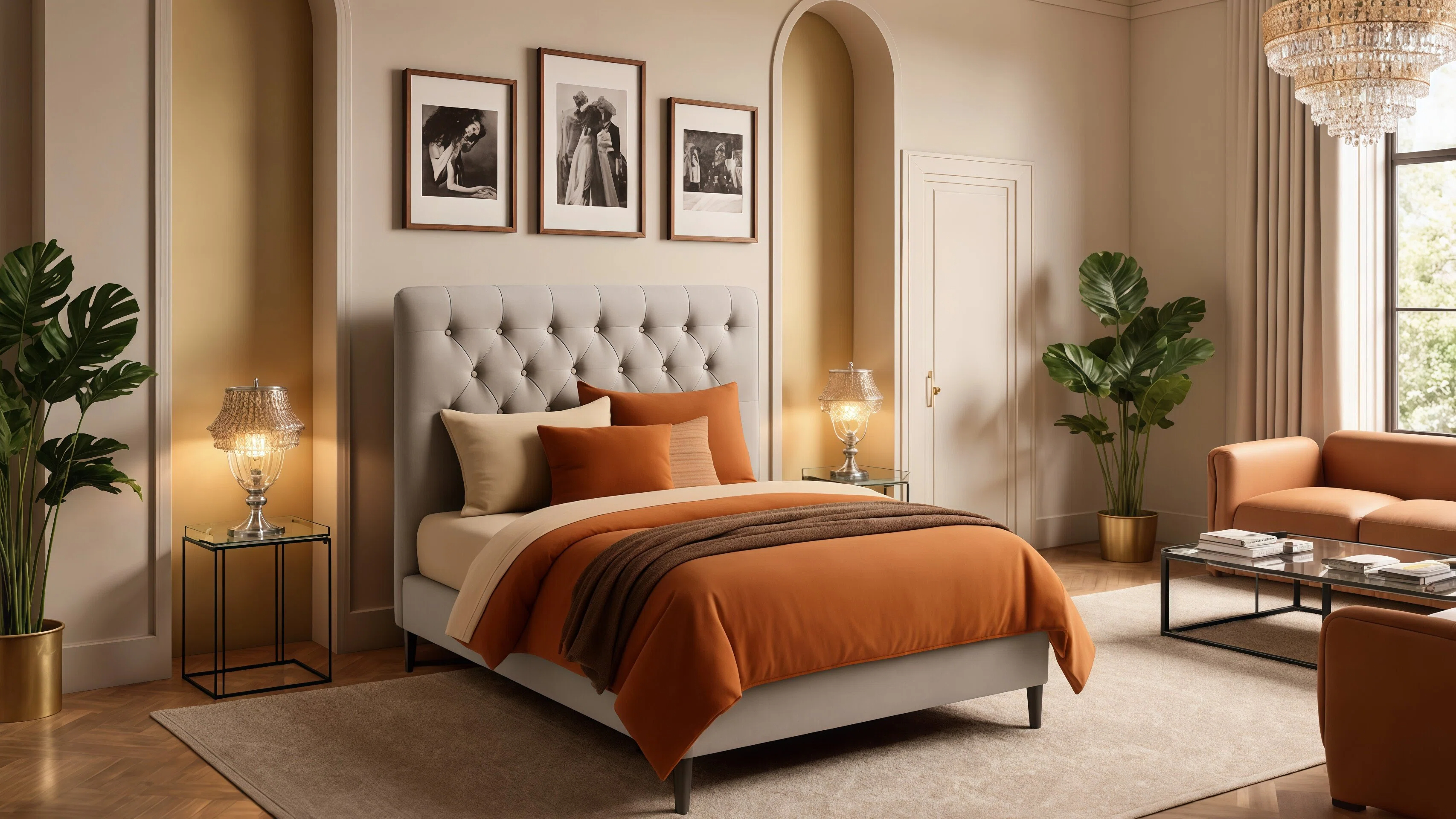 King Bed with Scalloped Velvet Headboard in Black and Cream